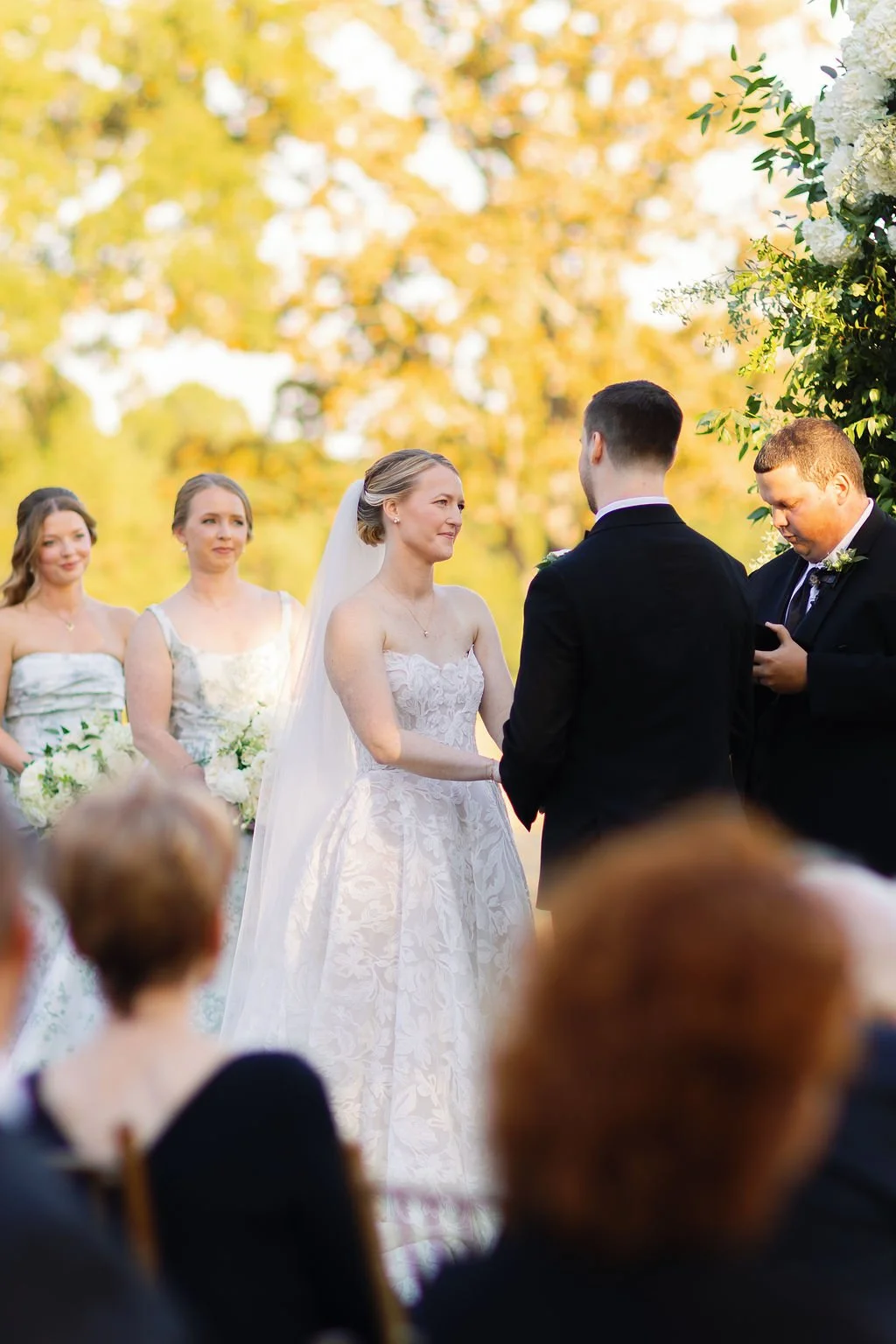 Mollie and Brian’s wedding unfolded on a luminous October afternoon at Quail Hollow Club. The light turned warm and golden, the trees glowed in full fall color, and the entire day carried a quiet, effortless elegance.